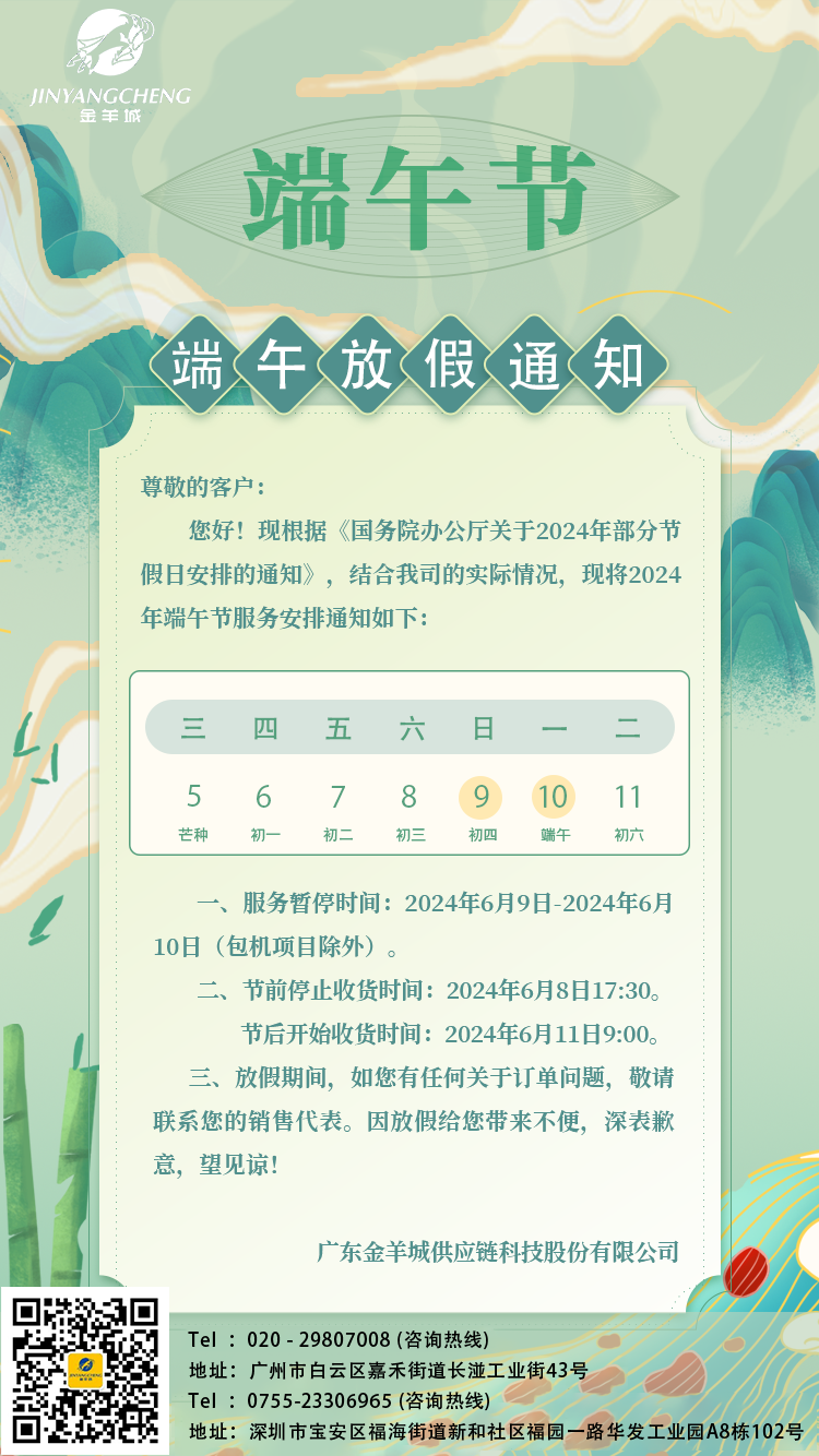 金羊城 | 2024年端午节假期服务安排