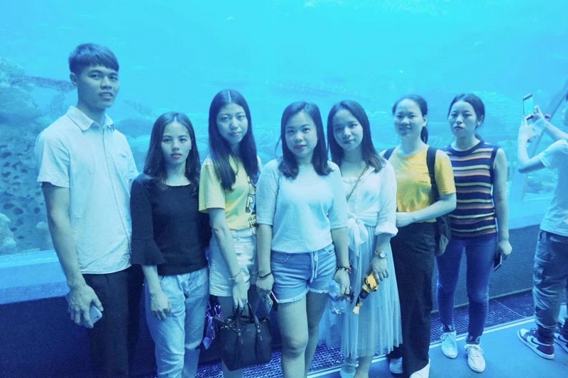 同事们一起感受着美轮美奂的海洋世界带来的无限魅力.
