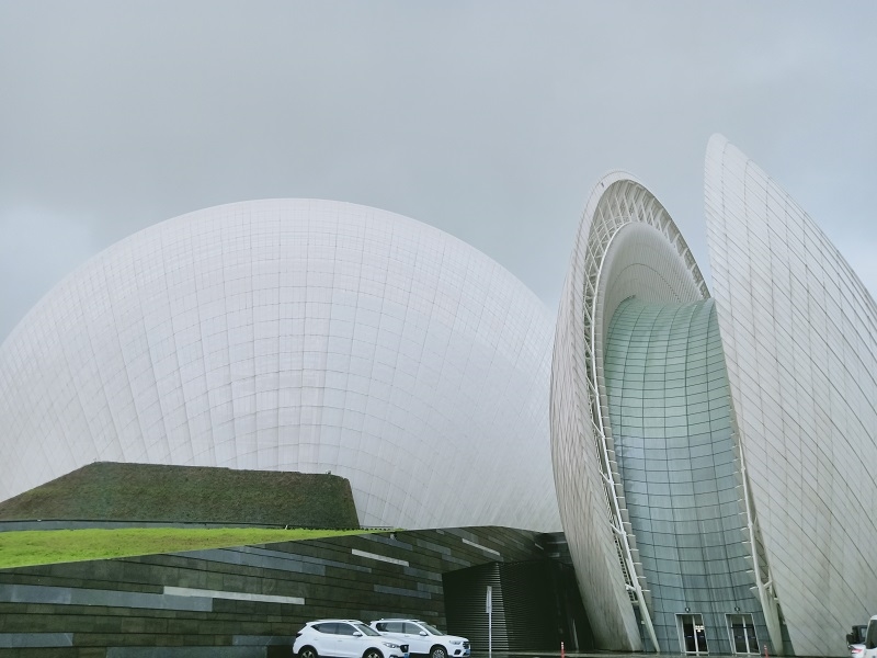 它是中国唯一建在海上的歌剧院使用贝壳的形状构成,